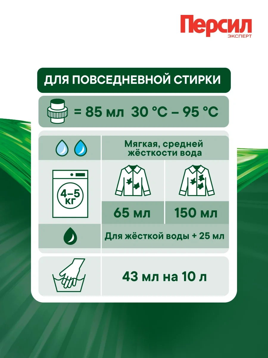 Обладает усовершенствованным сочетанием 13 активных компонентов, которые проникают глубоко в волокна ткани и эффективно отстирывают даже сложные пятна.