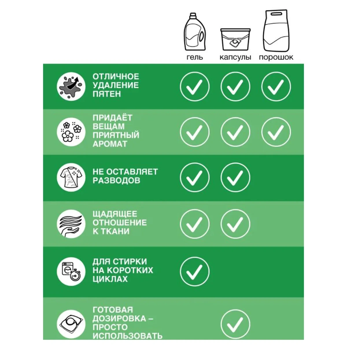 •\tРастворяется даже в холодной воде и при стирке на коротких циклах