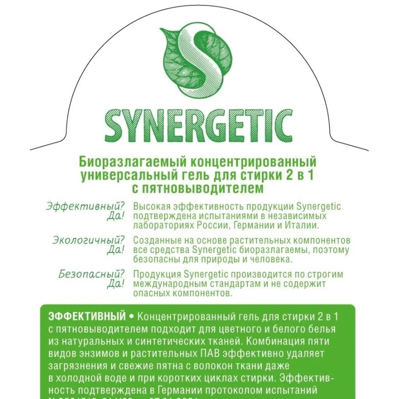 Гель для стирки Synergetic 2 в 1 универсальный, 750мл