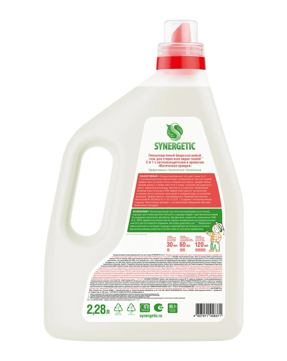 Гель для стирки Synergetic 3 в 1, 2.28л орхидея