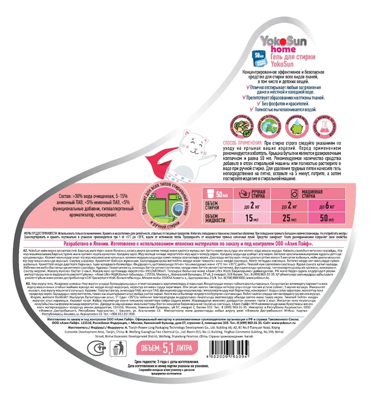 Гель для стирки YokoSun Весенняя сакура, 5.1л