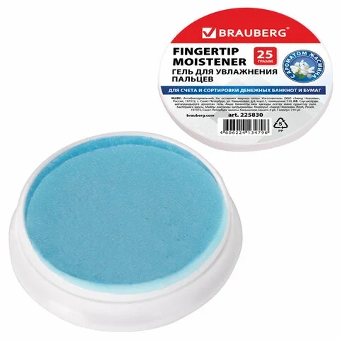Гель для увлажнения пальцев Brauberg 25г, c ароматом жасмина, голубой