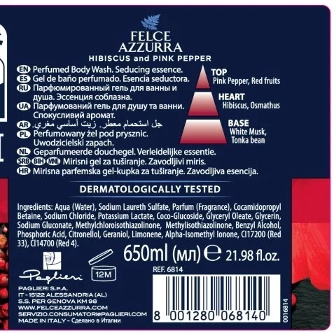 Гель для ванны и душа Felce Azzurra гибискус-розовый перец, 650мл