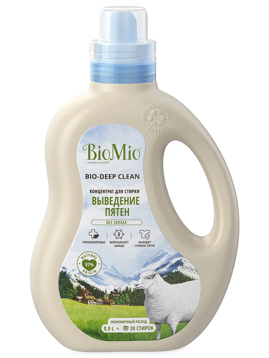 Гель-концентрат для стирки BioMio 2в1, 900мл