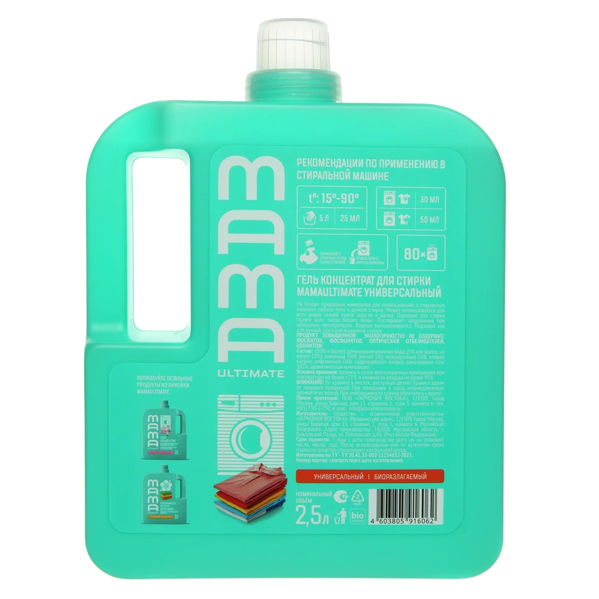 Концентрированный универсальный гель для стирки цветного белья Mama Ultimate - это высокоэффективное моющее средство на основе природных минералов, которое обеспечивает чистоту и свежесть вещей без вреда для здоровья и окружающей среды. Благодаря новой формуле с мягкой биоразлагаемой моющей основой гель безопасен для домашних септиков и эффективно удаляет старые и въевшиеся загрязнения даже при невысоких температурах.