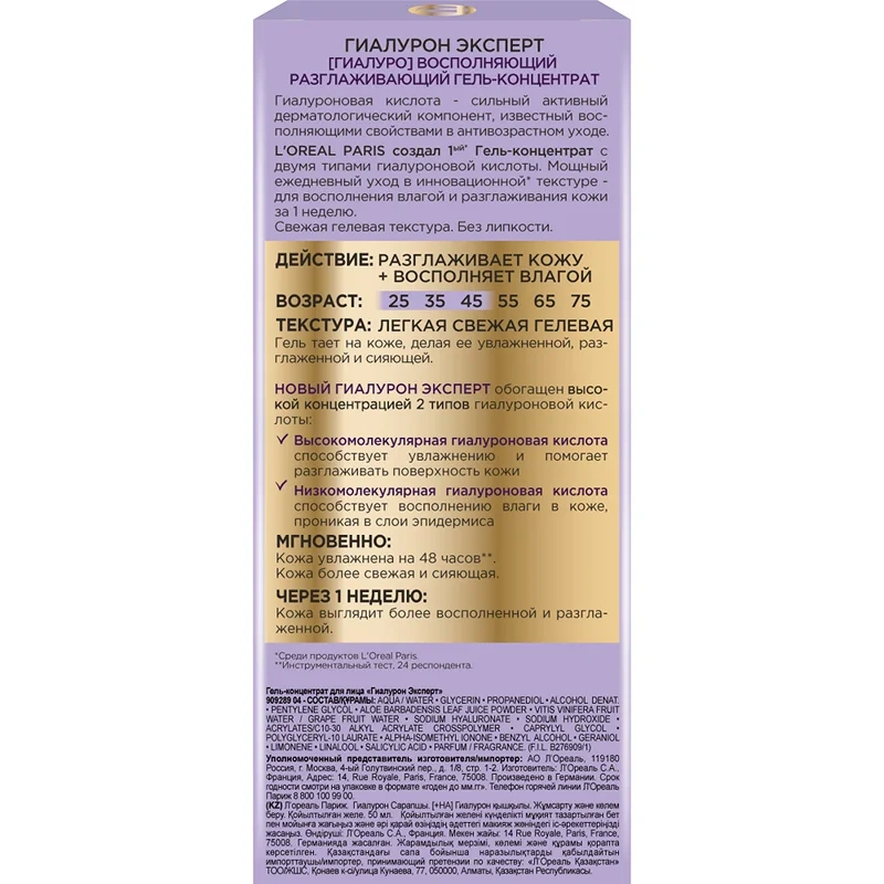 Гель-концентрат L'Oreal Paris гиалурон эксперт, 50мл