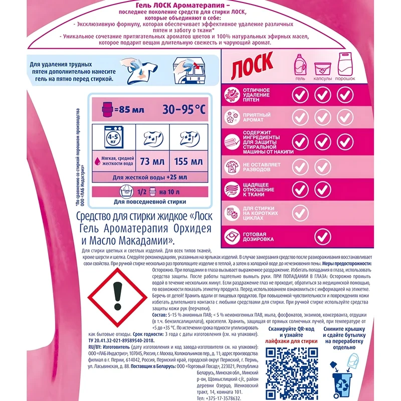 Гель для стирки Лоск Арома орхидея и масло макадамии 30 стирок, 2.19л