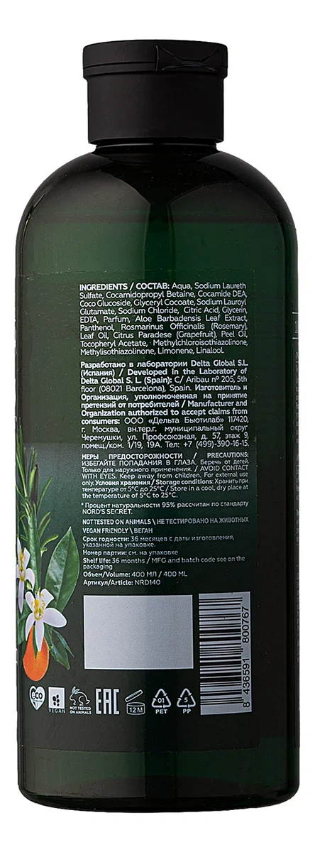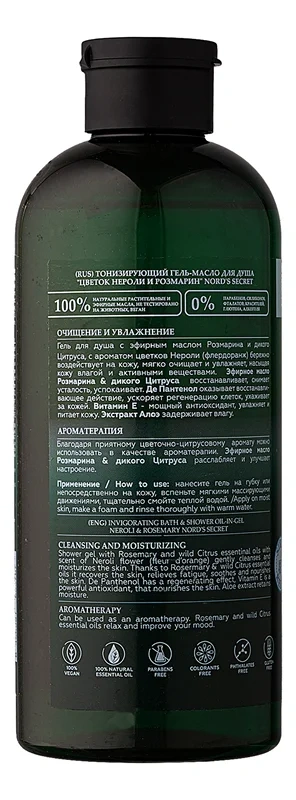 Гель-масло для душа Nord's Secret тонизирующий нероли-розмарин, 400мл