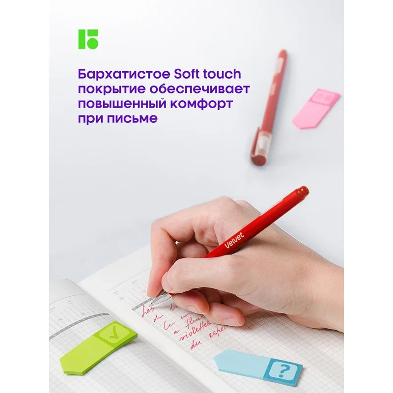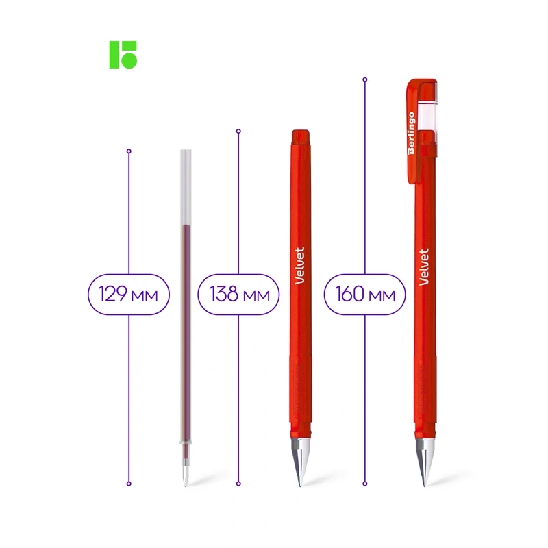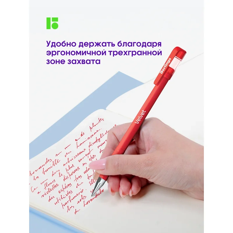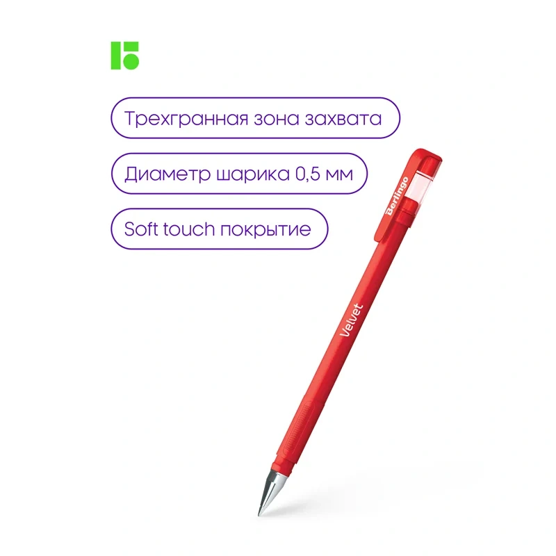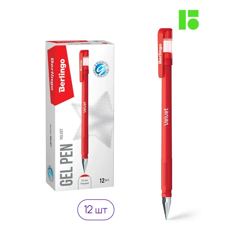 Ручка гелевая Berlingo Velvet с колпачком и клипом станет стильным канцелярским аксессуаром и надежным помощником для работы или учебы. Цвет чернил – красный. Диаметр пишущего узла составляет 0,5 мм, благодаря чему получается тонкая, аккуратная линия. Толщина линии письма 0,4 мм, а длина линии письма – 400 м. Благодаря технологии soft-touch приятное на ощупь бархатистое покрытие корпуса создает дополнительный комфорт при письме. Цвет корпуса соответствует цвету чернил. Эргономичная трёхгранная зона захвата обеспечивает удобство при использовании ручки. Рифление в зоне захвата препятствует скольжению пальцев. Ручки упакованы в картонную коробку по 12 штук.