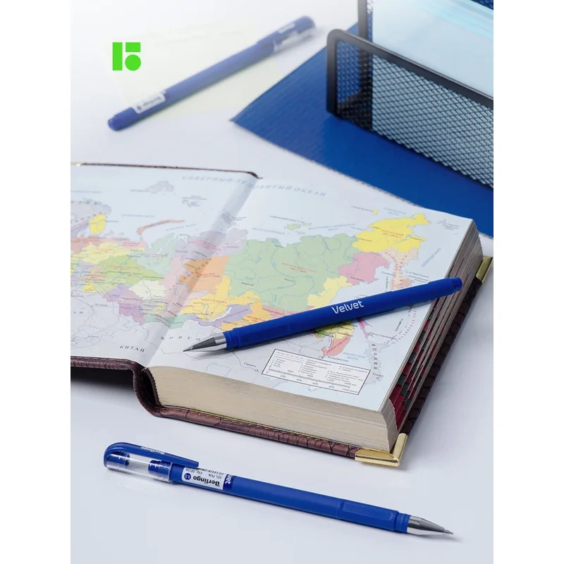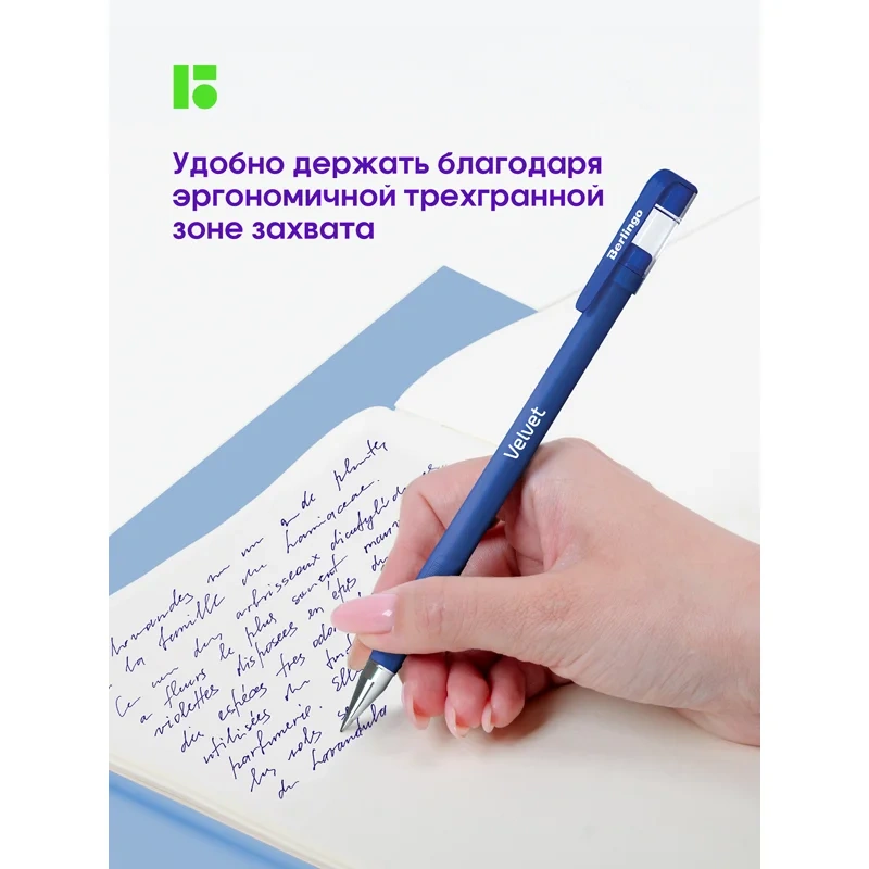 Ручка гелевая Berlingo Velvet с колпачком и клипом станет стильным канцелярским аксессуаром и надежным помощником для работы или учебы. Благодаря технологии Soft touch, приятное на ощупь бархатистое покрытие корпуса создает дополнительный комфорт при письме. Цвет корпуса соответствует цвету чернил. Эргономичная трёхгранная зона захвата обеспечивает удобство при работе при использовании ручки. Рифление в зоне захвата препятствует скольжению пальцев. Цвет чернил – синий. Диаметр пишущего узла составляет 0,5 мм, благодаря чему получается тонкая, аккуратная линия. Толщина линии письма 0,4 мм, а длина линии письма – 400 м.