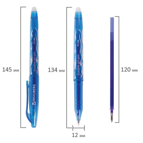Гелевая ручка стираемая Brauberg 0.5мм, синяя, стираемая
