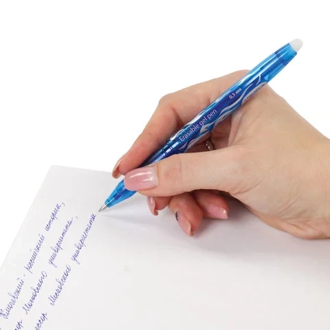 Имеется возможность многократного стирания. Ручка имеет круглый корпус и стандартный наконечник, а также рифленую зону захвата, которая препятствует скольжению пальцев при письме. Длина сменного стержня составляет 120 мм. Диаметр пишущего узла, равный 0,5 мм, создает линию письма, равную 0,35 мм.