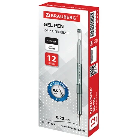 Ручка гелевая Brauberg Diamond черная, 0.25мм, черный корпус
