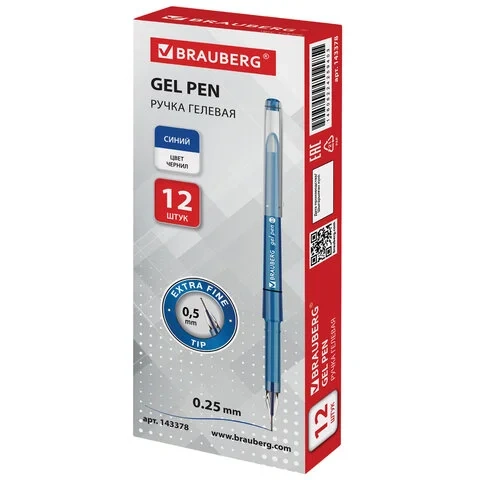 Ручка гелевая Brauberg Diamond синяя, 0.25мм, голубой корпус