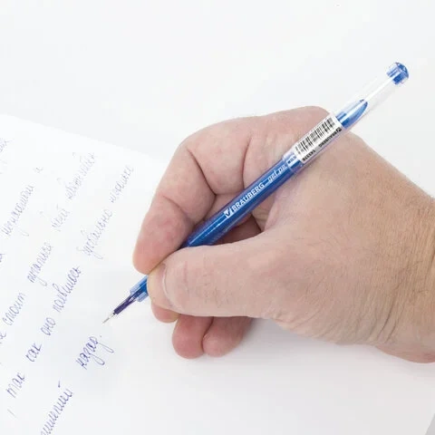 Синий цвет корпуса соответствует цвету чернил, а необычный пишущий узел с диаметром наконечника 0,5 мм создает линию письма, равную 0,25 мм.