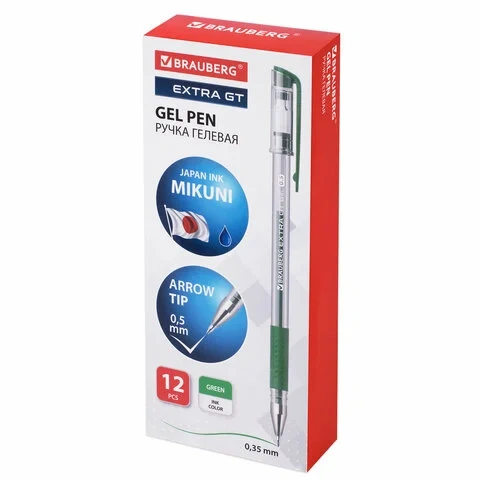 Гелевая ручка Brauberg Extra Gt зеленая, 0.35мм, прозрачный корпус