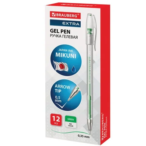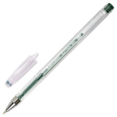 Гелевая ручка Brauberg Extra зеленая, 0.35мм, прозрачный корпус