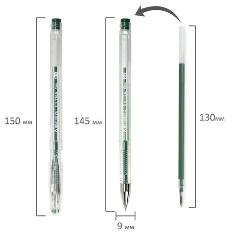 Гелевая ручка имеет шестигранный прозрачный корпус с рифленой поверхностью в зоне захвата. Детали ручки выполнены в цвет чернил. Сменный стержень длиной 130 мм со стандартным наконечником позволит использовать ручку максимально долго. Диаметр пишущего узла, равный 0,5 мм, создает линию письма, равную 0,35 мм. Японские чернила MIKUNI с насыщенным пигментом обеспечивают непревзойденное качество письма. Цвет чернил - зеленый.