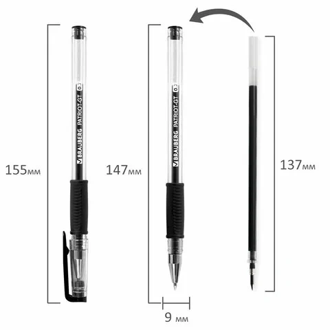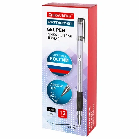 Гелевая ручка Brauberg Patriot-Gt черная, 0.4мм, прозрачный корпус