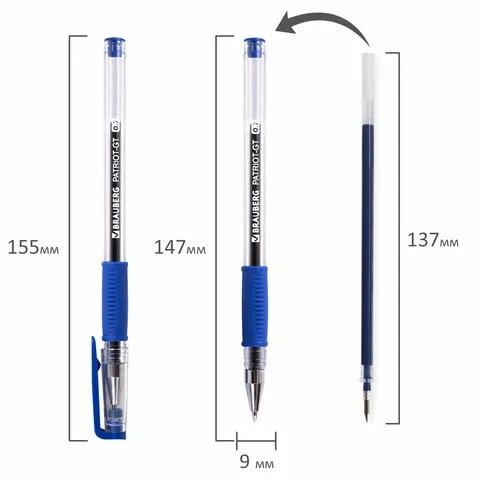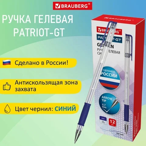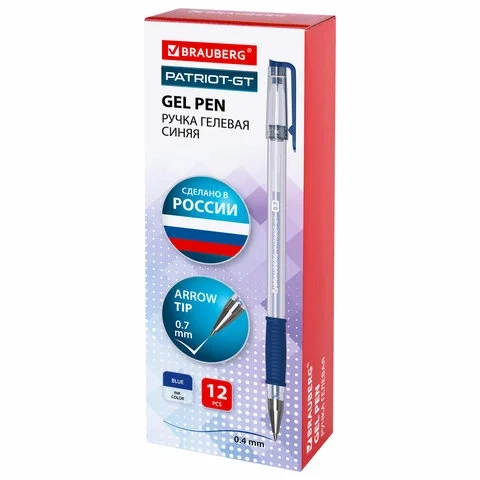 Гелевая ручка Brauberg Patriot-Gt синяя, 0.4мм, прозрачный корпус