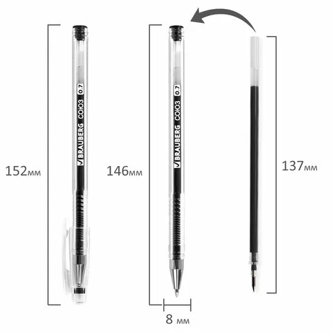 Имеет круглый прозрачный корпус с рифленой поверхностью в зоне захвата. Детали ручки выполнены в цвет черных чернил. Сменный стержень длиной 137 мм со стандартным наконечником позволит использовать ручку максимально долго. Диаметр пишущего узла 0,7 мм создает линию письма, равную 0,5 мм.
