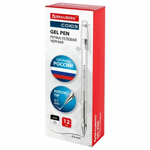 Гелевая ручка Brauberg СОЮЗ черная, узел 0.7мм, линия письма 0.35мм, корпус прозрачный
