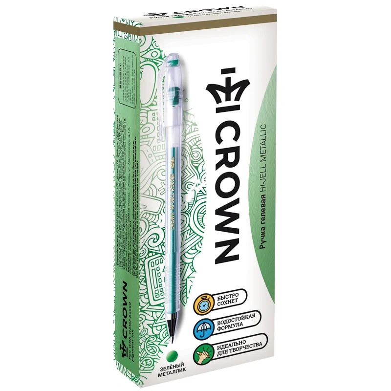 Цвет чернил - зеленый металлик, диаметр пишущего узла - 0,7 мм. Упаковка: картонная коробка по 12 штук. Пиши комфортно и рисуй ярко вместе с гелевыми ручками Crown!