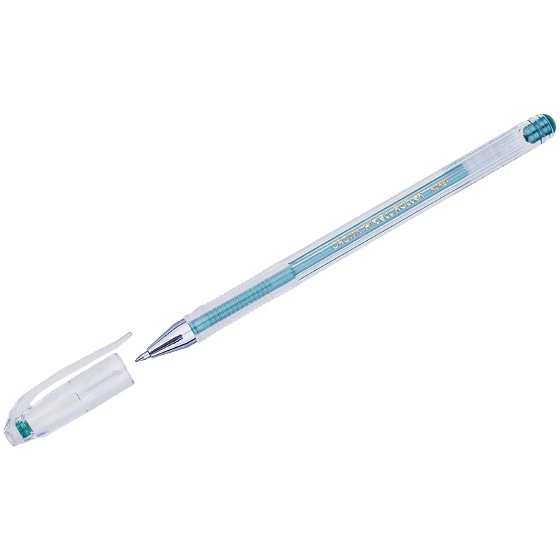 Ручка гелевая Crown Hi-Jell Metallic зеленый металлик, 0.7мм