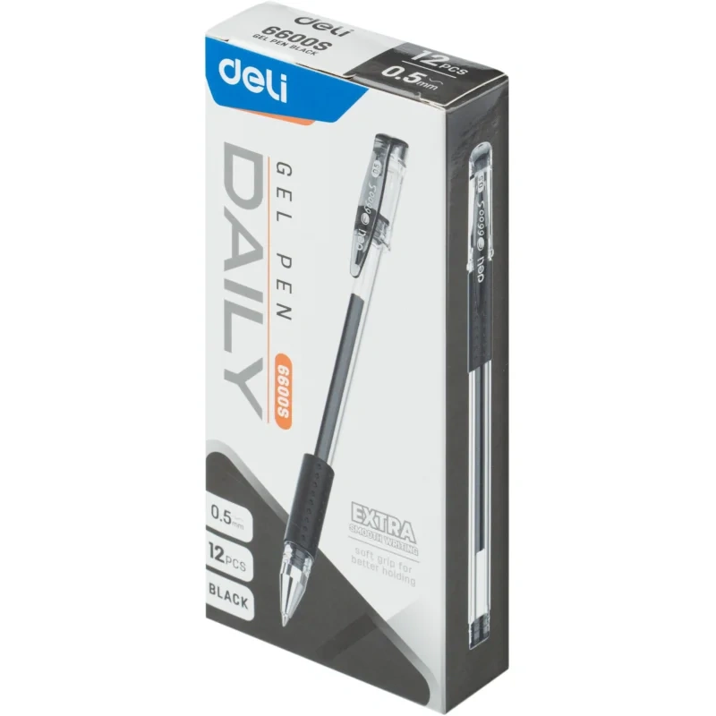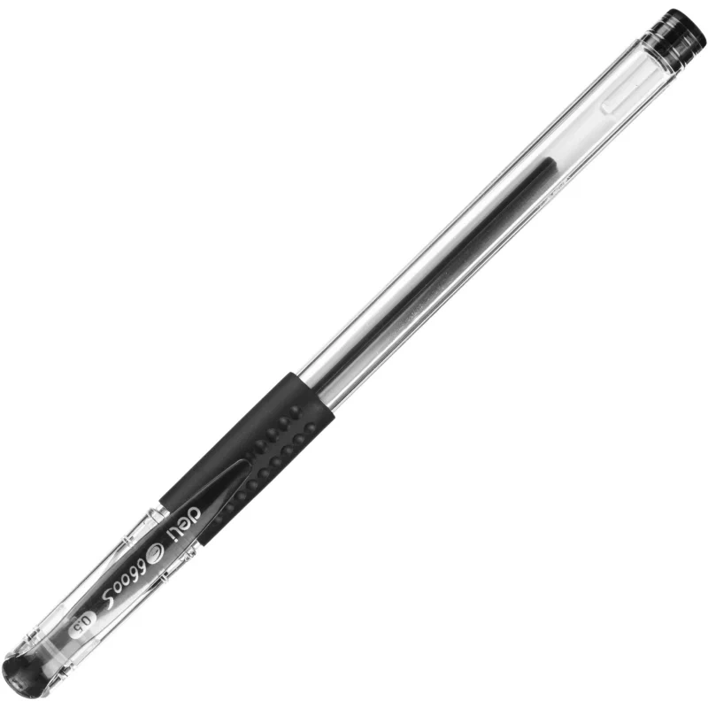 Ручка гелевая неавтоматическая Deli с удобной для письма мягкой зоной захвата обеспечивает легкое, мягкое и комфортное письмо. Хорошо подойдут для выделения заголовков или важных моментов в тексте. Диаметр пишущего узла ручки составляет 0.5 мм, толщина линии 0.35 мм. Ручка очень похожа по письму на перьевые, ложится на бумагу плавнее, чем шариковая. Четкие линии чернил не размазываются при нечаянном соприкосновении рукой. Высококачественные чернила позволяют увеличить продолжительность письма и сократить их расход. Ручка гелевая имеют прозрачный пластиковый круглый корпус, что позволяет контролировать уровень расхода чернил. Гелевая ручка пишет очень тонко и аккуратно (стандартный наконечник). Удобный клип на колпачке позволяет фиксировать ручку на ежедневниках, блокнотах и карманах одежды. Ручка удобно лежит в руке и не вызывает дискомфорта даже при длительно использовании. Такими ручками можно рисовать декоративные узоры или делать обводку различных элементов. Классическая гелевая ручка будет уместна на любом учебном или офисном столе. Цвет чернил: черный.