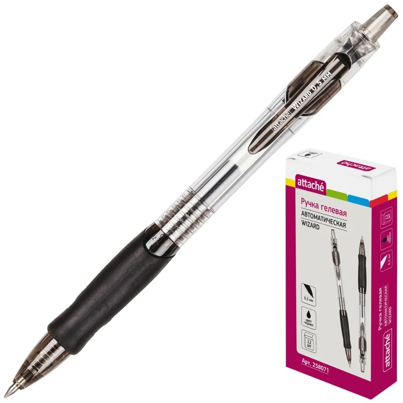 Ручка гелевая автоматическая Attache G-987 черная, 0.5мм, прозрачный корпус