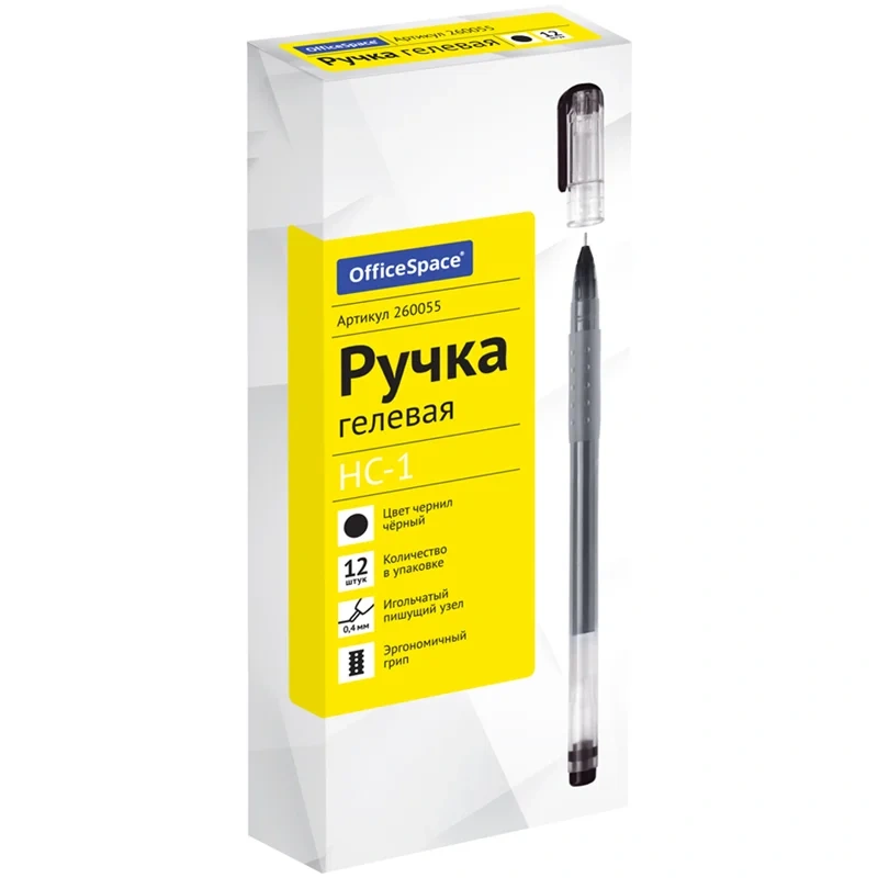 Ручка гелевая Officespace HC-1 черная, 0.4мм, бесстержневая