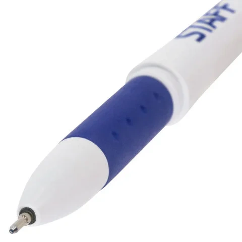 Имеет круглый корпус белого цвета с резиновым держателем. Детали ручки выполнены в цвет синих чернил. Сменный стержень длиной 135 мм с игольчатым наконечником позволит использовать ручку максимально долго. Диаметр пишущего узла, равный 0,5 мм, создает линию письма, равную 0,35 мм.
