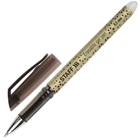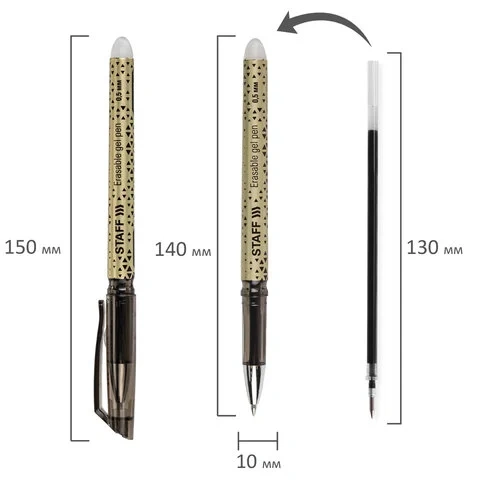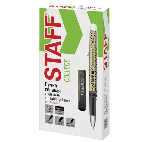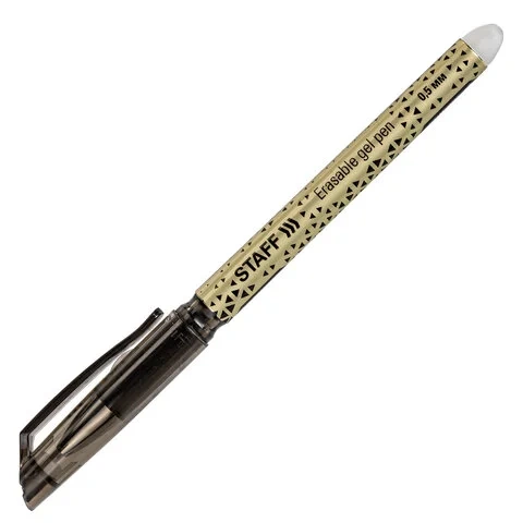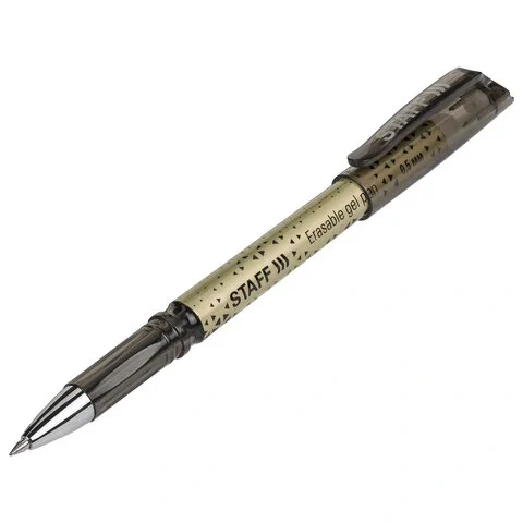 Ручка гелевая стираемая Staff черная, 0.35мм, золотистый корпус
