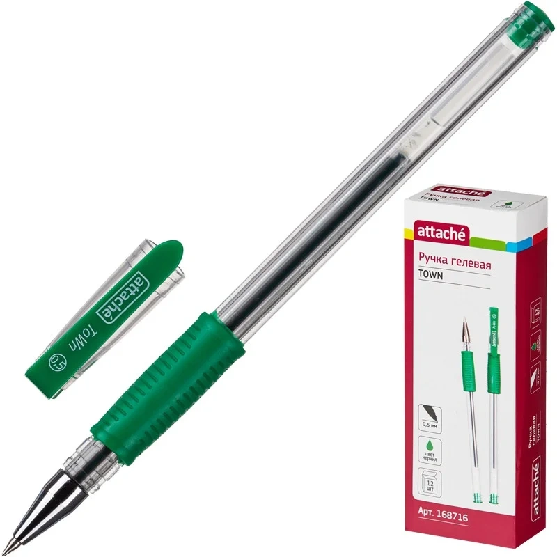 Ручка гелевая Attache Town зеленая, 0.5мм
