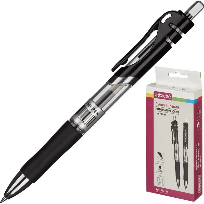 Ручка гелевая автоматическая Attache Hammer черная, 0.5мм