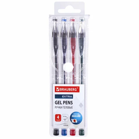 Набор гелевых ручек Brauberg EXTRA 4 цвета, узел 0.5мм, линия 0.35мм