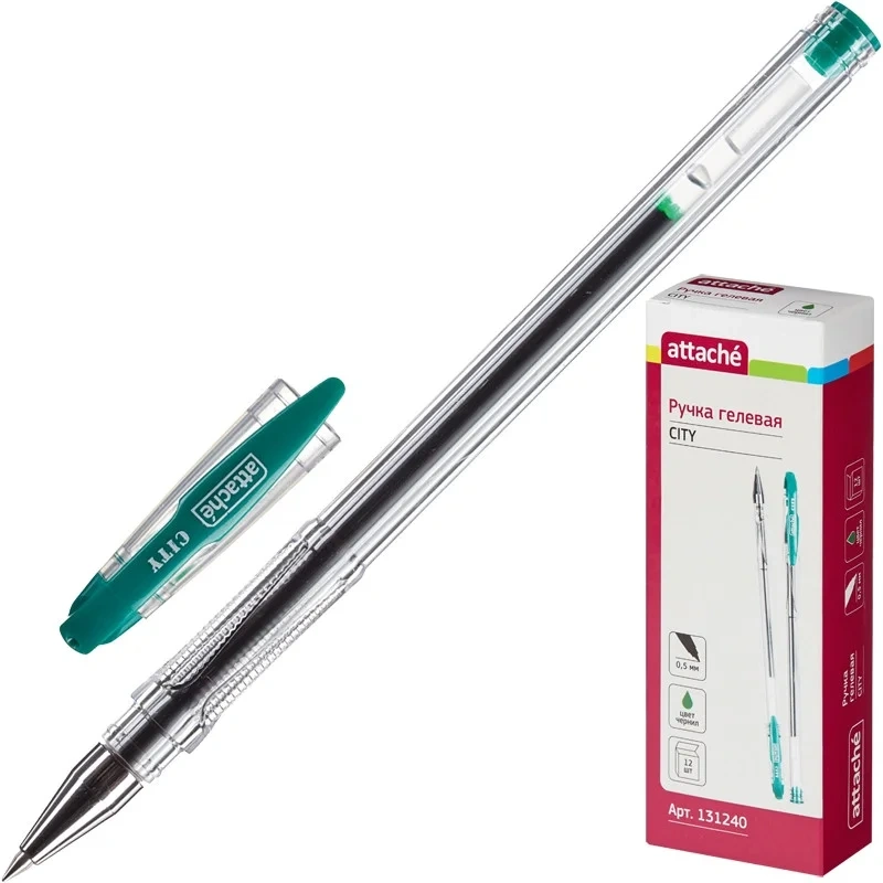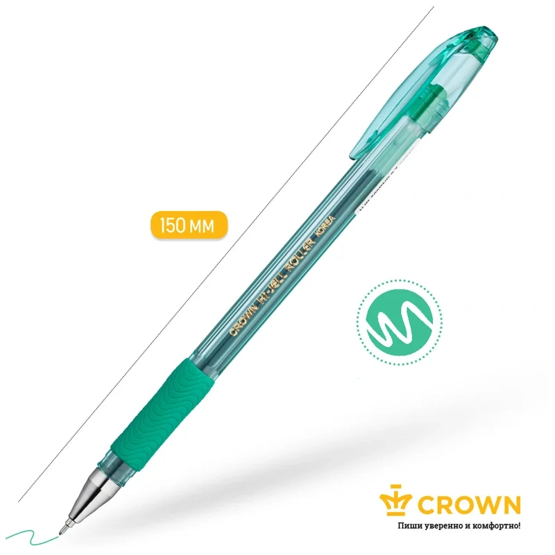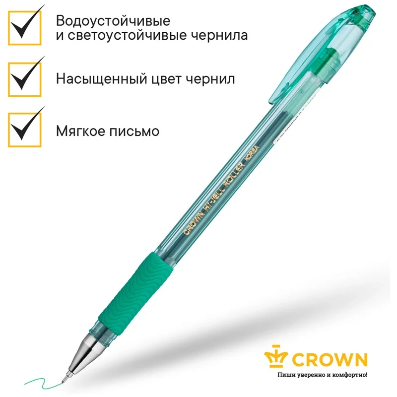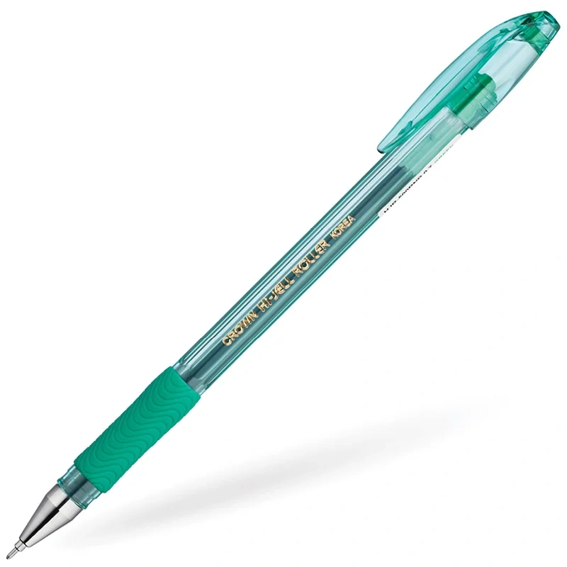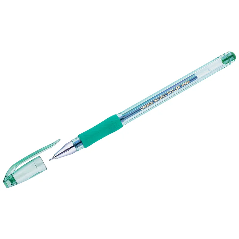 Ручка гелевая Crown Hi-Jell Needle Grip зеленая, 0.7мм