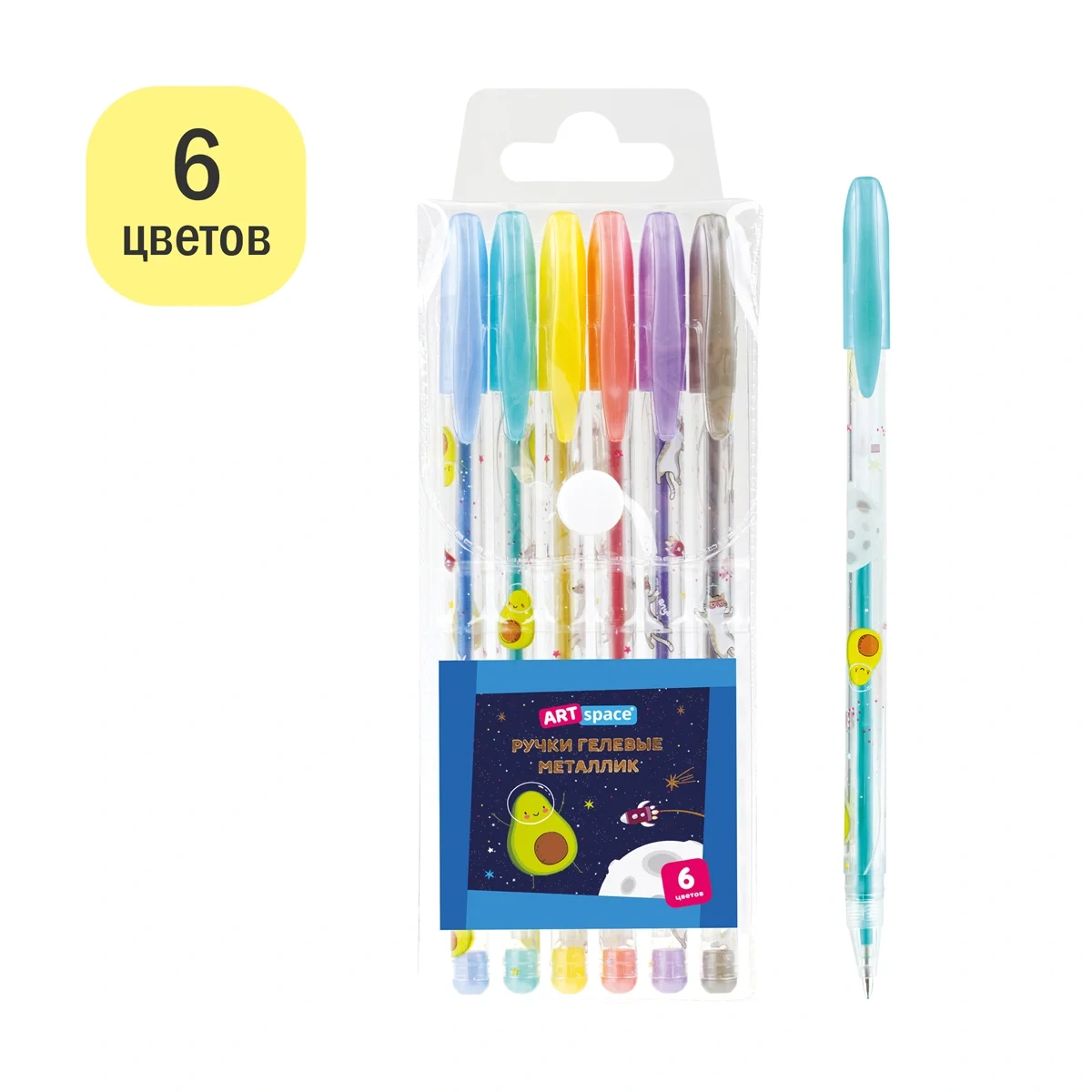 Набор гелевых ручек Artspace Космические приключения 6 цветов, металлик, 1мм