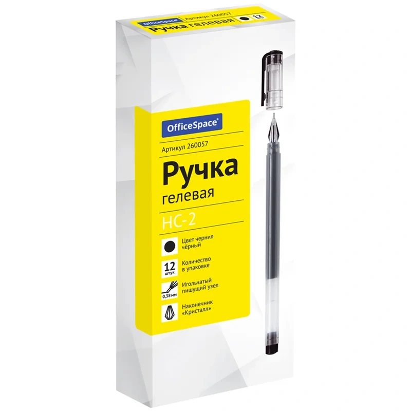 Ручка гелевая Officespace HC-2 черная, 0.38мм, бесстержневая