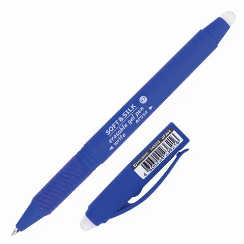 Гелевая ручка стираемая Brauberg Soft & Silk синяя, 0.5мм, синий корпус
