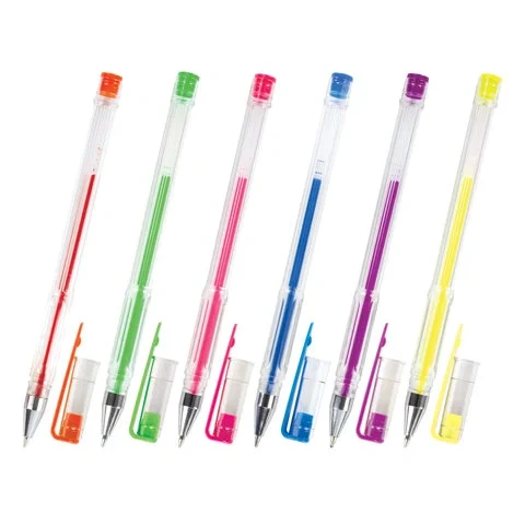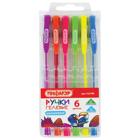 Набор гелевых ручек Пифагор 6 цветов, неон, 0.5мм, прозрачный корпус