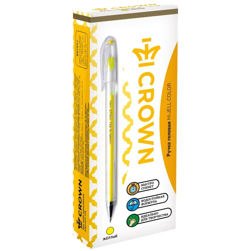 Ручка гелевая Crown Hi-Jell Color желтая, 0.7мм