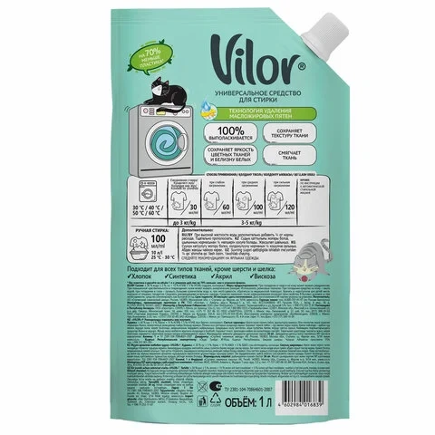 Гель для стирки универсальный 1000 г, VILOR для всех видов тканей, 15539