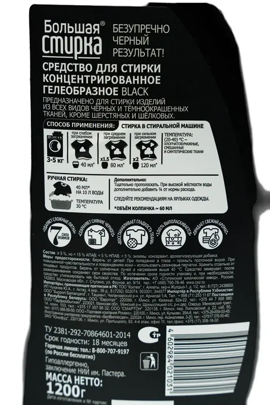 Гель для стирки Большая Стирка Black 1.2л, для темных вещей