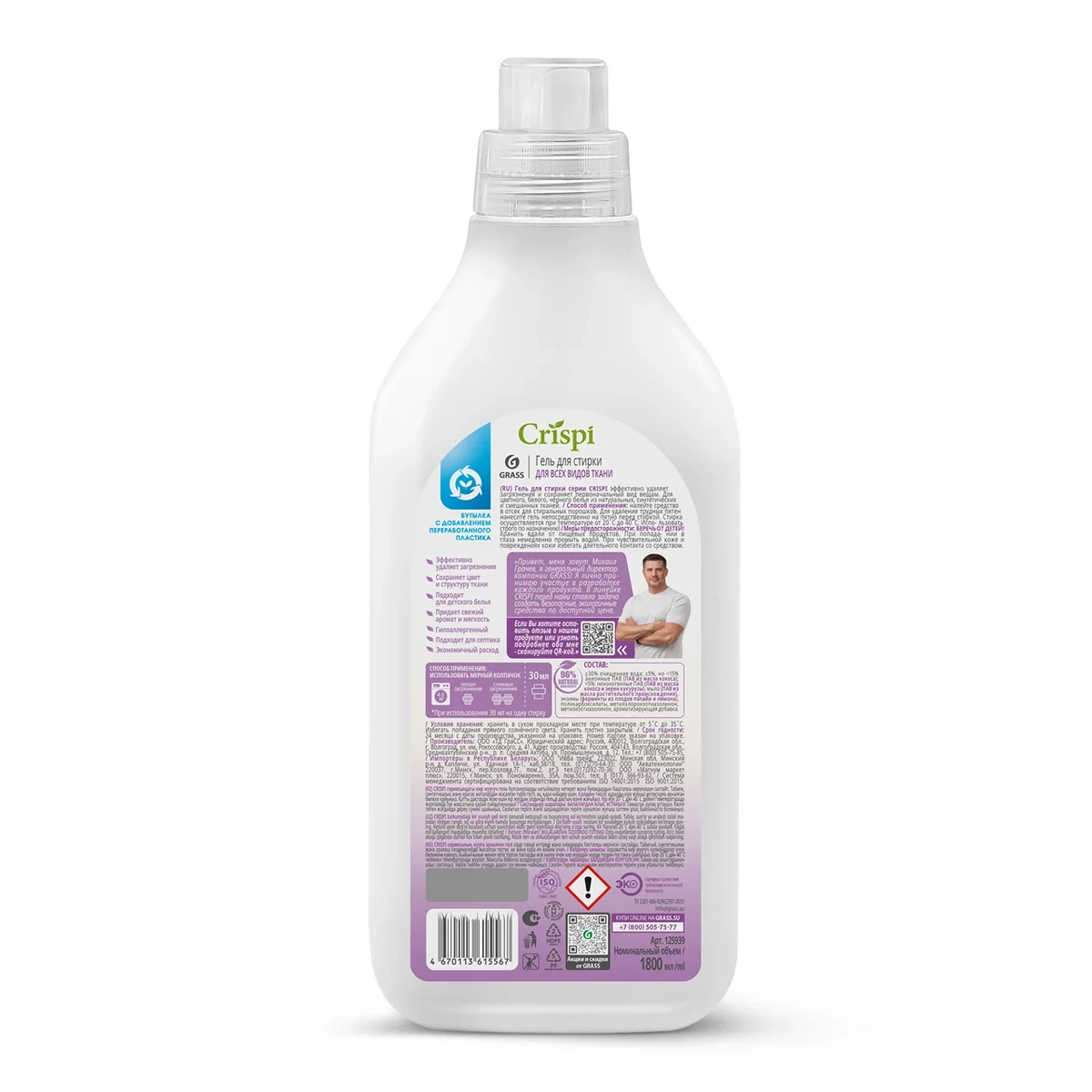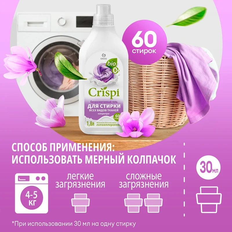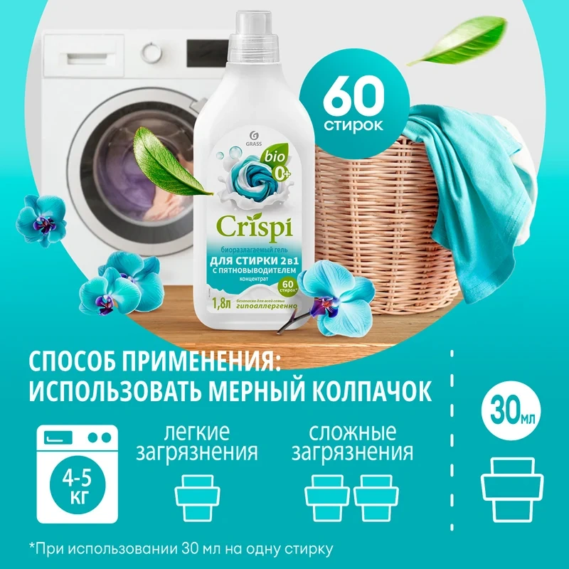 Гель для стирки Grass Crispi 1.8л, для всех видов ткани