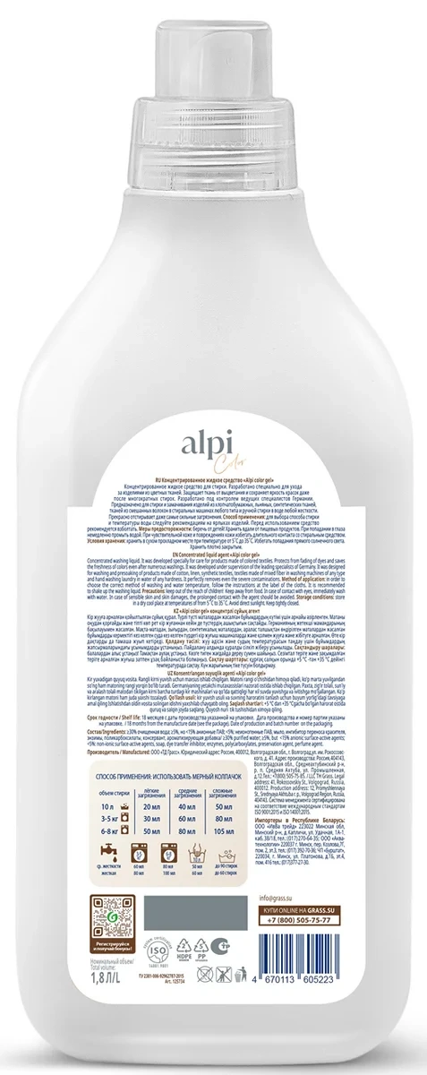 Гель для стирки Grass Alpi для цветных вещей, концентрат, 1.8л