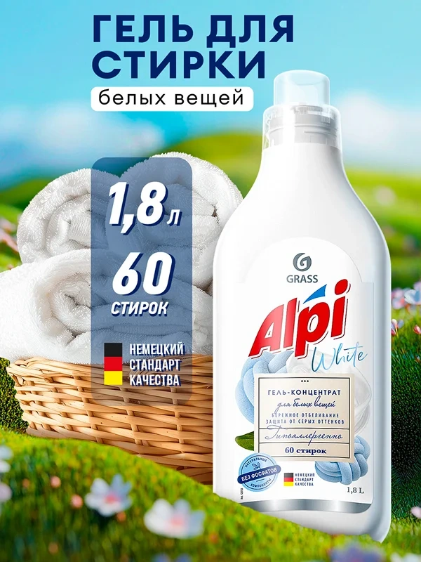 Гель для стирки Grass Alpi для белых вещей, концентрат, 1.8л