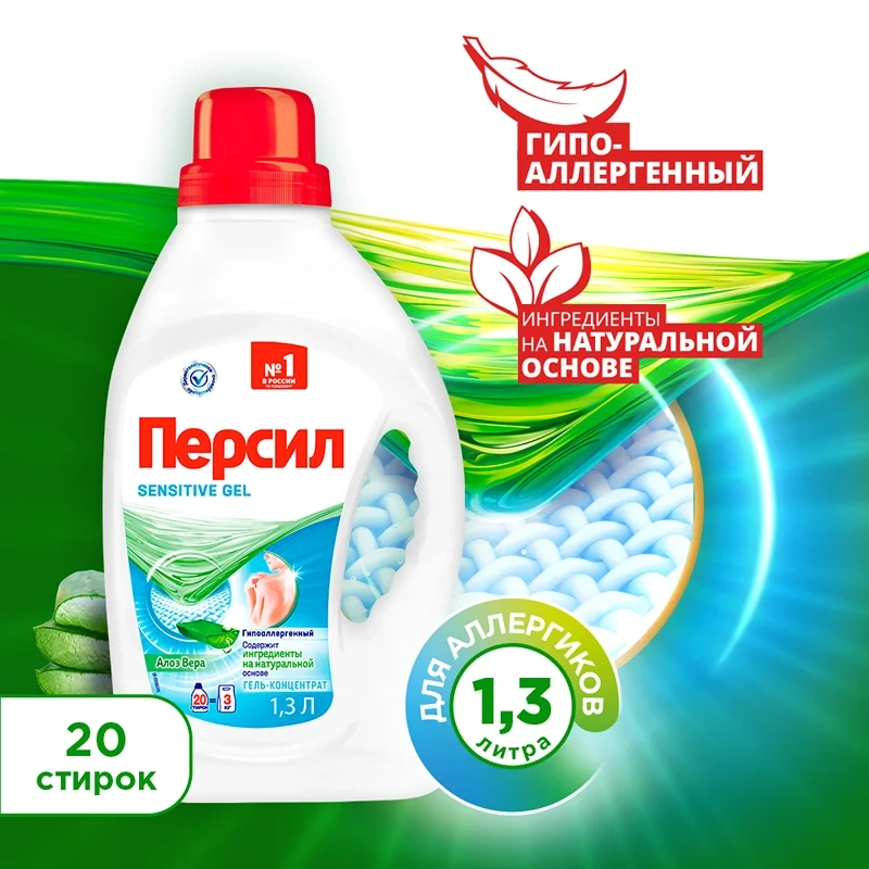 Гель для стирки Персил Sensitive для чувствительной кожи 20 стирок, 1.3л