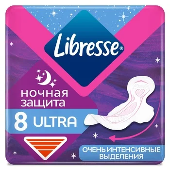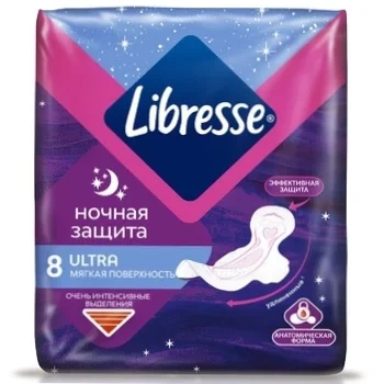 Женские гигиенические прокладки Либресс Ультра Ночные с дышащим верхним слоем и анатомической формой дарят тебе защиту на всю ночь, чтобы ничего не отвлекало тебя от крепкого сна. Мягкая поверхность и дышащий верхний слой помогают чувствовать себя комфортно и дарят ощущение нежного соприкосновения с кожей. Анатомическая форма обеспечивает плотное прилегание, чтобы минимизировать протекание, а крылышки помогают фиксировать прокладки на белье. Прокладки отлично удерживают жидкость, что дает чувство сухости и комфорта. Живи смелее с Либресс!