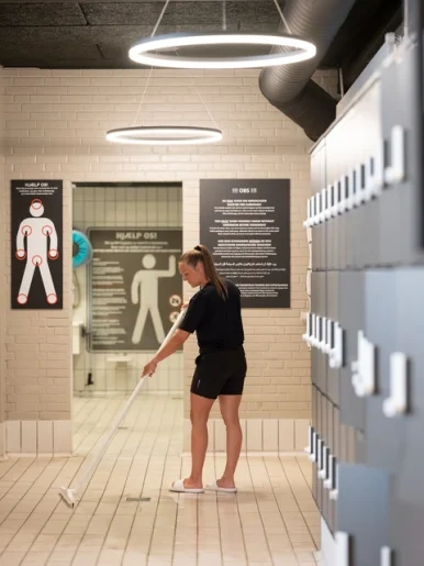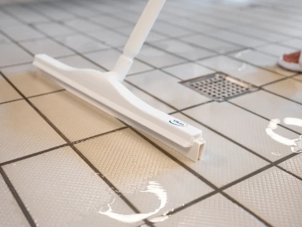 Сгон разработан для участков, где требуется одновременно высокий уровень гигиены и эффективное удаление воды. Идеально подходит для всех типов покрытий полов. Пластины легко вынимаются для замены или мытья. Сменные пластины – арт. 7734.